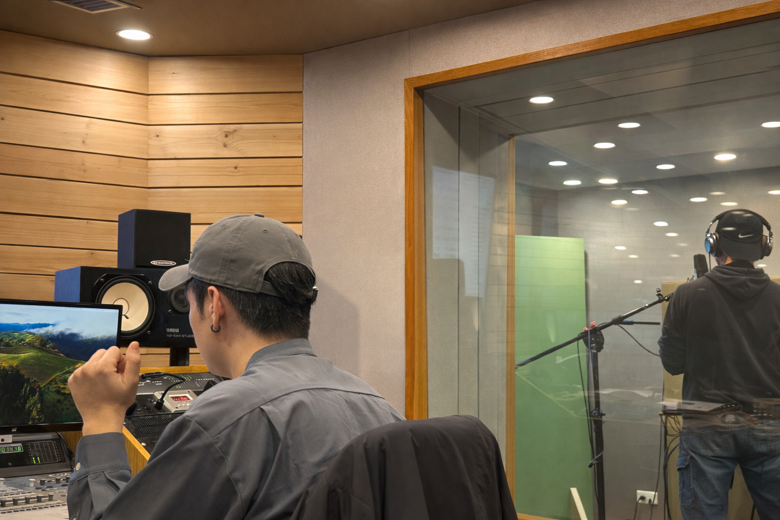 錄音室內由音控人員與配音員同步進行錄製與監聽,確保聲音品質與情境真實度。(圖片/咳咳文化聯盟提供)